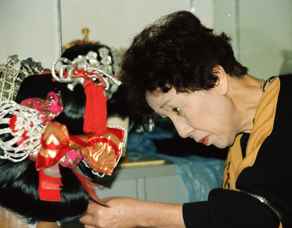 当町の中町では平成4年(1992年)の公演から白菊師匠の振り付けですが、出町では前年の東曳山から指導されたようです。経緯としては嵐師匠が高齢で前年の1990年に西町公演を最後に引退され、後任として白羽の矢が刺さり、出町子供歌舞伎曳山振興会の五島会長がお願いに伺ったそうです。